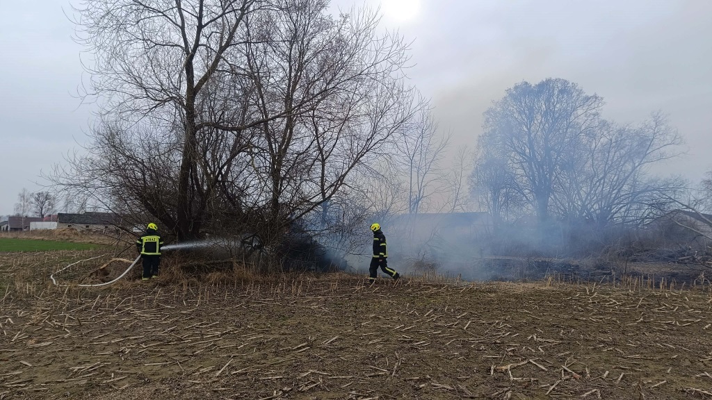 Pożar zarośli i gałęzi w miejscowości Godlewo-Baćki